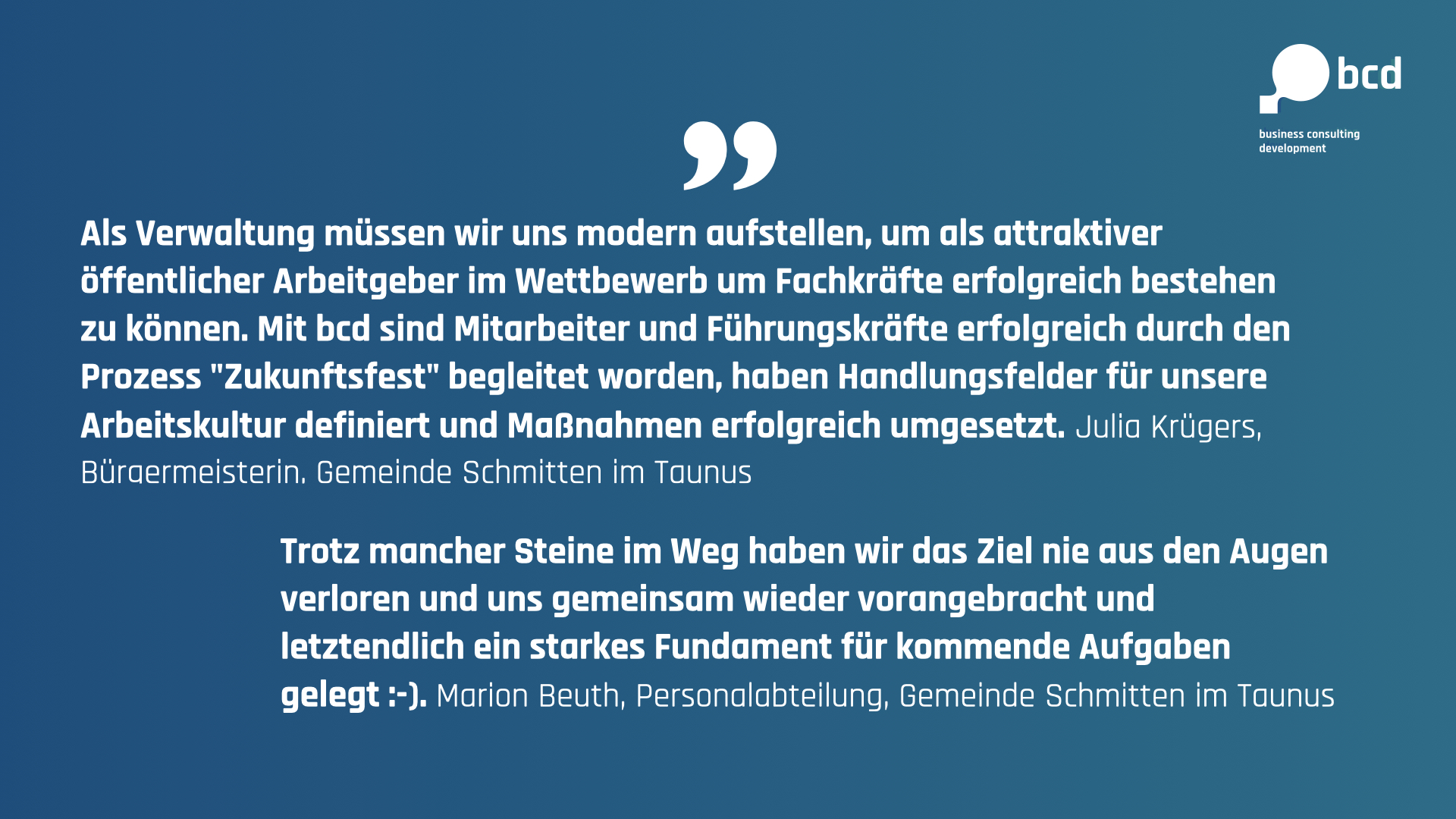 Ausgangslage: Modernisierung nach signifikantem Entwicklungsstillstand Zu Beginn des Prozesses „Zukunftsfest“ stand die Gemeindeverwaltung Schmitten im Taunus vor erheblichen Herausforderungen. Über mehrere Legislaturperioden hinweg prägte eine unter anderem autokratische...